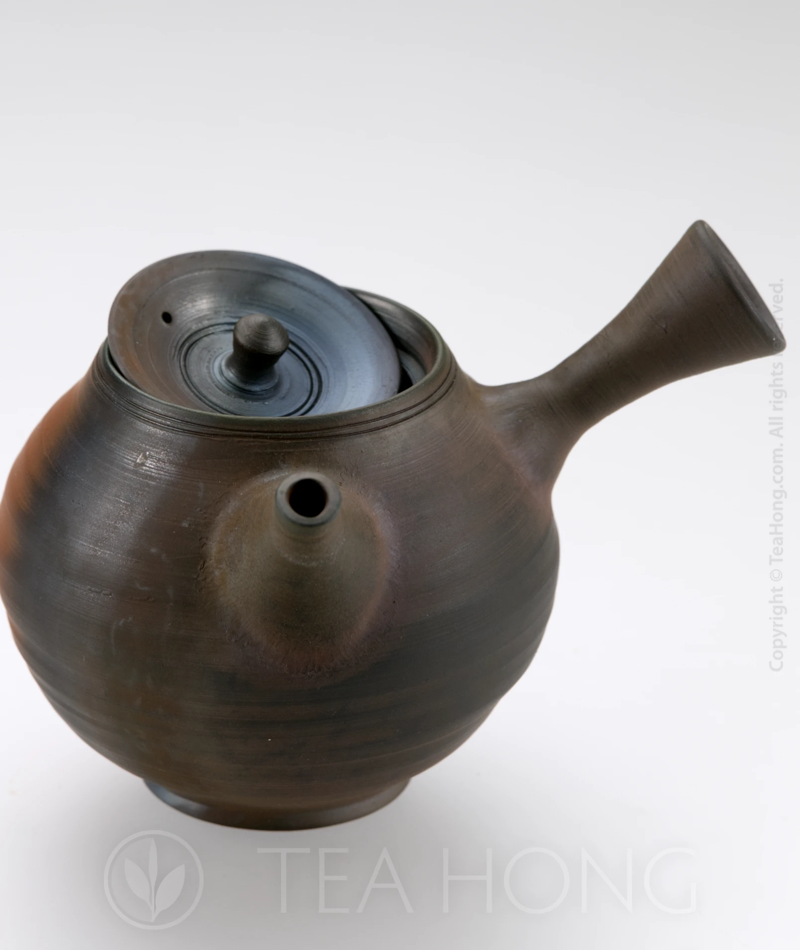 This is one of the signature designs by this multiple award winning artisan. Notice how the surface finish changes from matt to various grades of glossiness and even iridescent, most noticeably at the teapot bottom. This is all done with the artist’s own “kiln change” process where sudden change of temperature and firing environment causes the clay to set differently, and his pride is to let it all happen on the tiny surface of this little teapot.