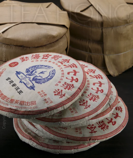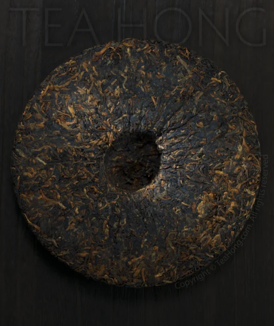 Although a mere 15 km away from the much sought after origin of Ban Zhang (班章), Màn Sǎo (曼掃) has a very similar horticultural environment for tea trees. To us, this village in the mountainous Xishuangbanna (西雙版納) region is a great source for tea for its lesser fame that allows for much easier accessibility and and greater values. This fully post-fermented tea is an example. A leaf that has gone through 70+ days (20 days less than some of our other shu pu’er) of true post-fermentation can easily be so mellowed that all its characters pertaining to its unique terroir could have been overly subdued. Yet this Old Tree Golden Flush is still able to tinkle, however harmoniously subtly, with the accents and tones typical of the products from the high altitudes in this southern part of Yunnan bordering Myanmar and Laos. Having been properly baked and amply aged, this TCM neutral-warm tea is not only an adaptable and friendly food pairing tea, but also a submersive experience for your special tea moment.