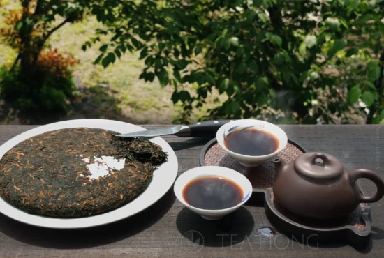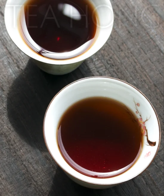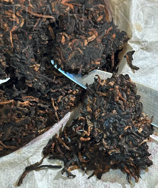 As for all other dark (post-fermented) tea, always use freshly boiled water (100°C) for both blanching and infusion. For a matured compressed shu cha like this, blanching it two times before the first infusion is the best practice. Otherwise, blanch it at least once.